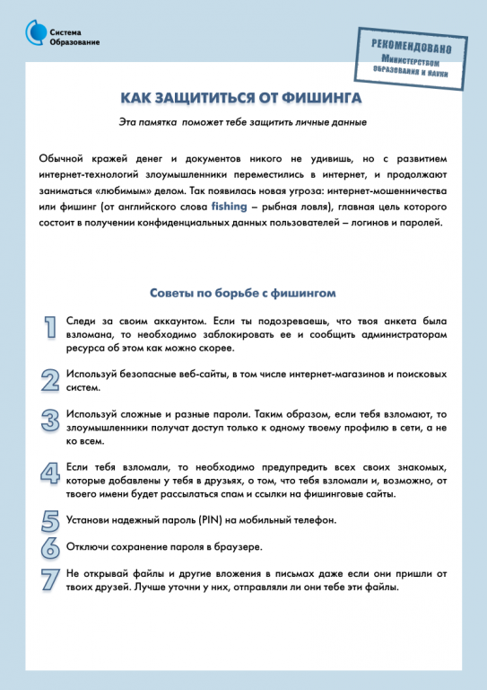 ИНФОРМАЦИОННАЯ ПАМЯТКА ДЛЯ ОБУЧАЮЩИХСЯ ДЛЯ РАЗМЕЩЕНИЯ НА ОФИЦИАЛЬНЫХ ИНТЕРНЕТ-РЕСУРСАХ